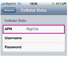 5 – در مرحله پنجم در قسمت APN عبارت RighTel را وارد کنید
